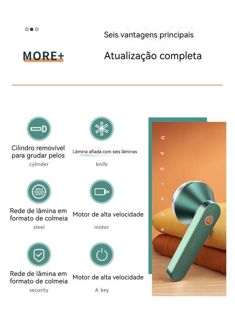 ra remoção limpa de bolas de cabelo (em roupas, sofás, etc.) — o corte é preciso e eficiente!